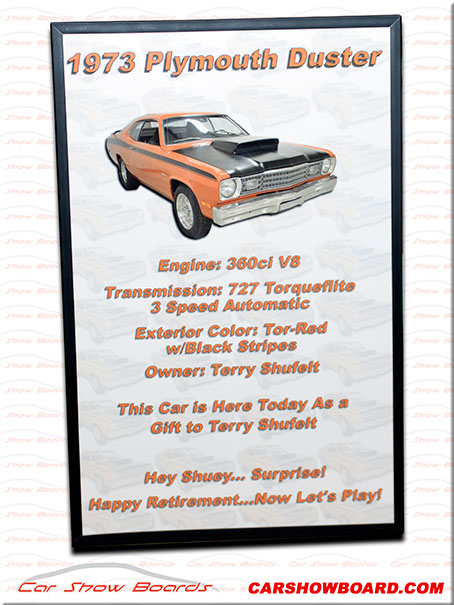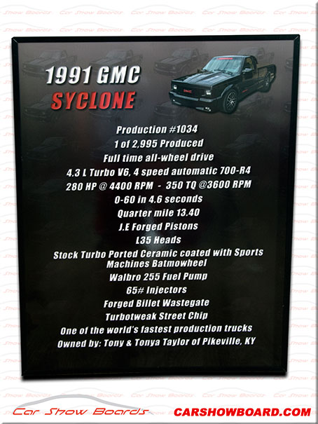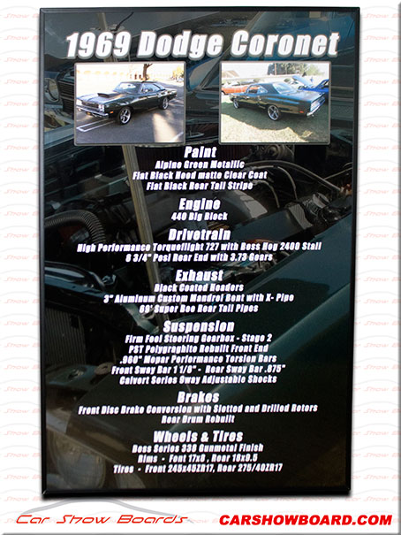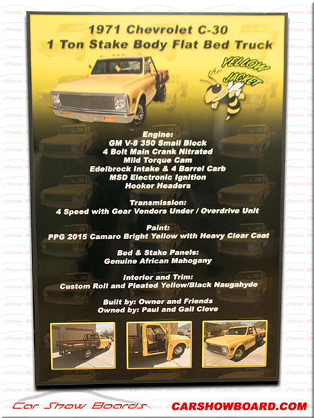 Our car show signs are the best on the market, and we back it up with a 1 year warranty! We don't use foam board or banner material, our signs are printed on weather resistant vinyl, laminated, then mounted on 1/4in sign board. Far more durable than anything else out there!
